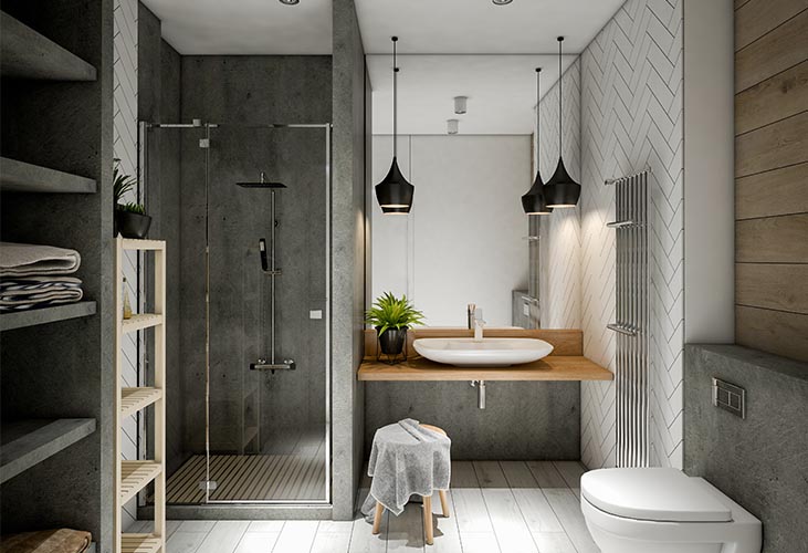 Vor allem, wenn man sich in jungen Jahren schon dazu entscheidet, ein barrierefreies Bad einzurichten, steht für viele im Vordergrund, dass trotz der barrierefreien Umgestaltung bei dem Design und der Technik keine Abstriche gemacht werden müssen. Insbesondere durch LED-Beleuchtung kannst du Akzente setzen. In Kombination mit dunklem Holz wie Walnuss oder Kirsche können dadurch direkte Verbindungen geschaffen werden. Positioniere dazu noch einige Pflanzenarten wie Palmen, Drachenbäume oder Bonsaibäume im Raum und erhalte direkt ein neues und erfrischendes Lebensgefühl in deinem neuen Bad. Die Armaturen, Halterungen oder Stützen fallen danach nicht mehr auf. Des Weiteren sind für ebenerdige und begehbare Duschen eine Betonoptik oder eine Kombination aus Betonoptik und Holz gut geeignet. Hierbei kannst du dich von einem Badspezialisten beraten und inspirieren lassen.